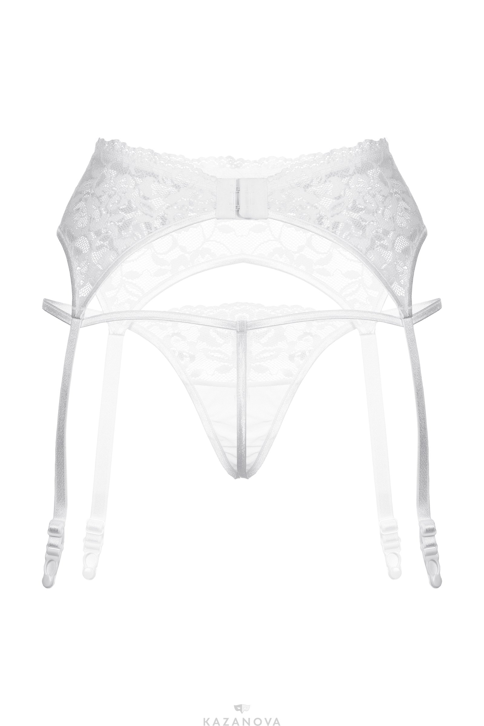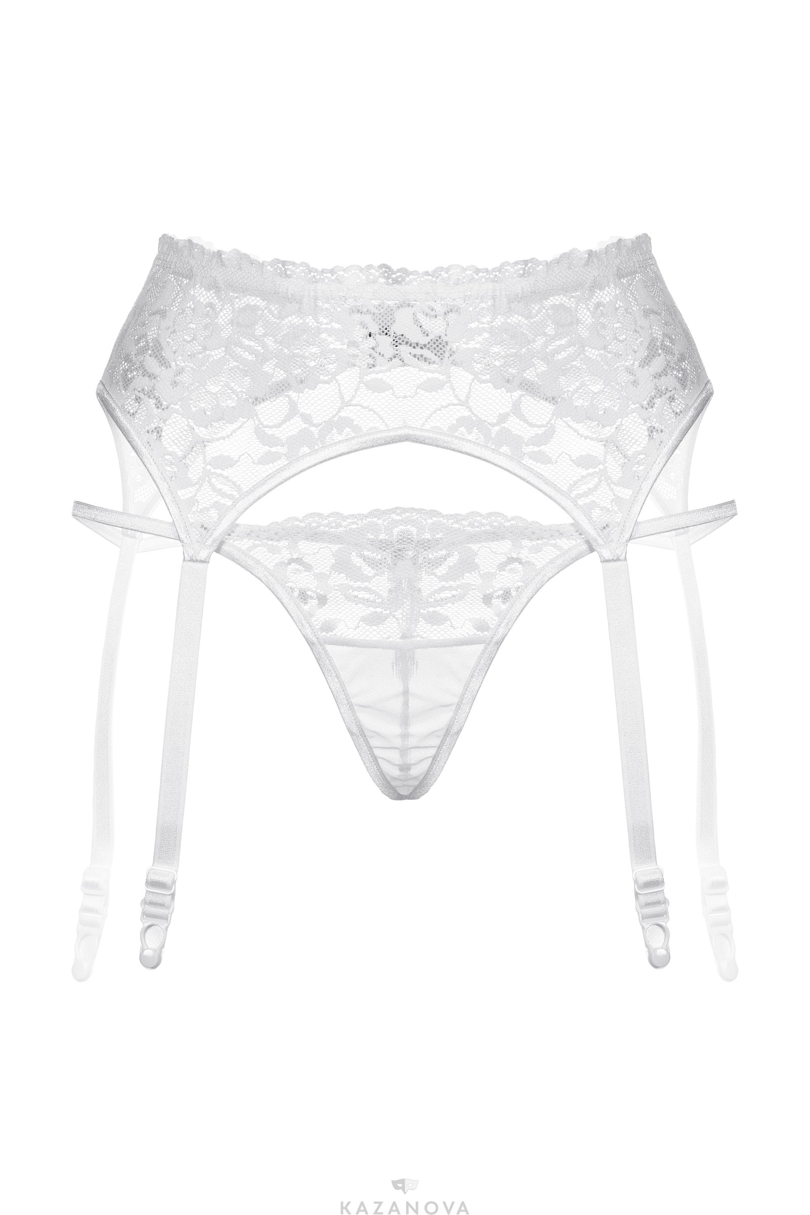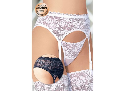 Стринги и пояс для чулок из кружева с цветочным орнаментом