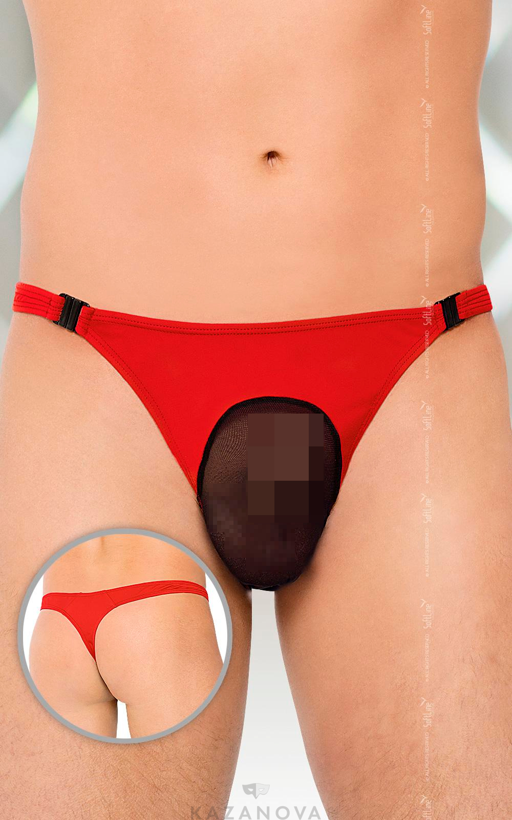 Трусы из плотной ткани. Спереди по центру вставка из прозрачной ткани, позволяющая демонстрировать самую интимную часть мужского тела.