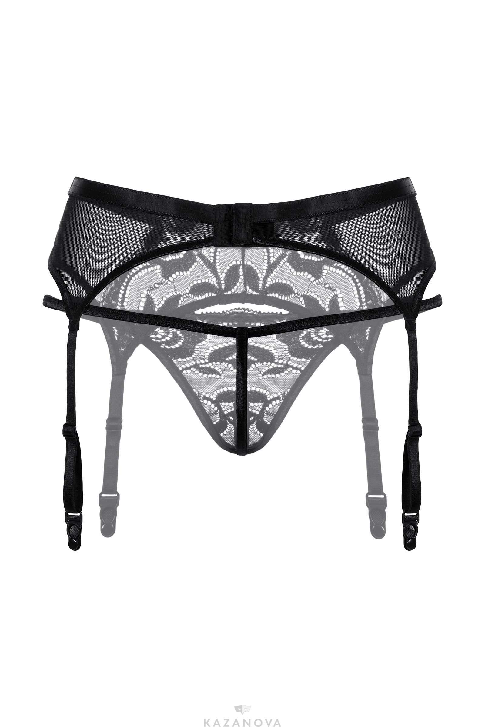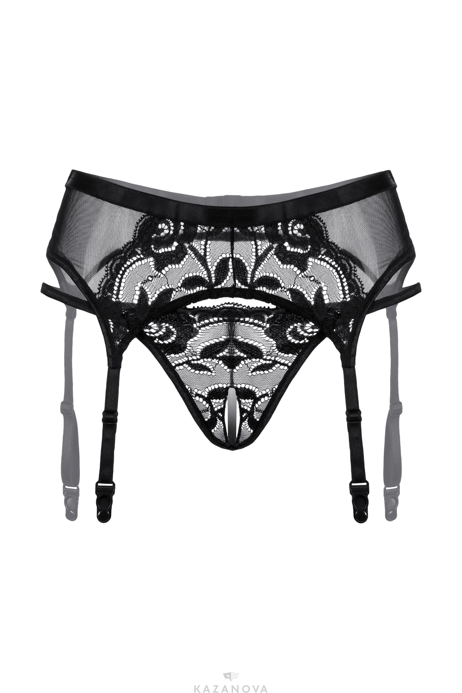 Стринги с генитальным доступом и пояс для чулок из тонкой сетки
