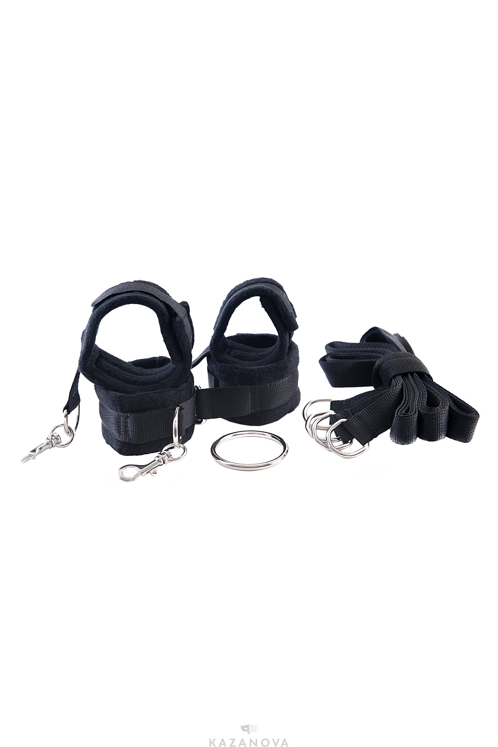 Набор включает в себя оковы из мягкого тканевого материала на короткой сцепке.