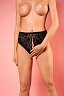 Трусики изготовлены из эластичной ткани и плотно облегают тело. Тонкие резиночки подчеркивают соблазнительную линию бедер. Декорированы стразами.