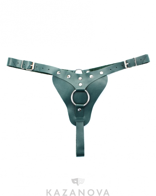 Трусики выполнены из натуральной кожи , декорированы ремнями из замши и металлическими кольцами . Трусики фиксируются ремнями и пряжками, позволяющими подобрать нужный размер. Сочный и дерзкий аксессуар поможет воплотить задуманное в реальность!