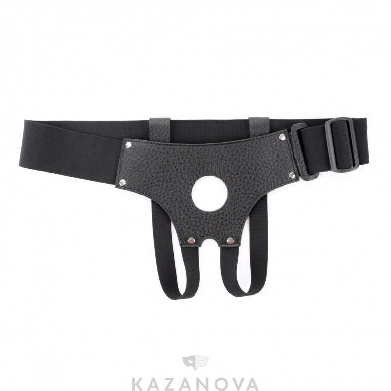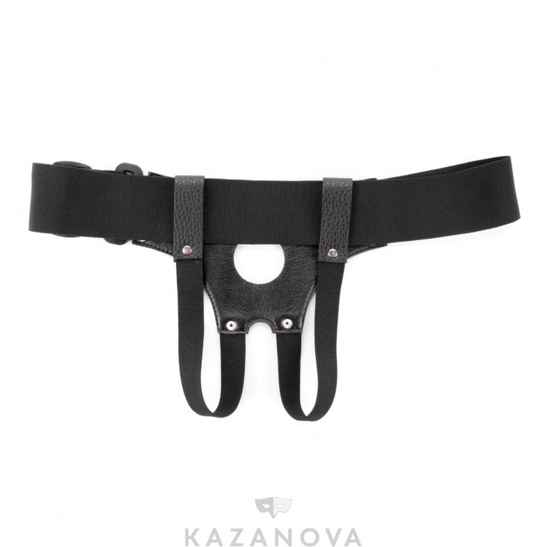 Трусики для страпона Арсенал из натуральной кожи с отверстием для страпона черные диаметр 4 см 006