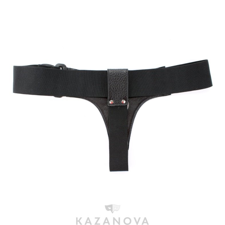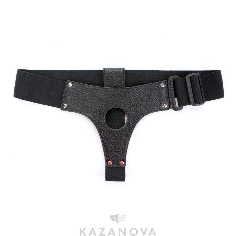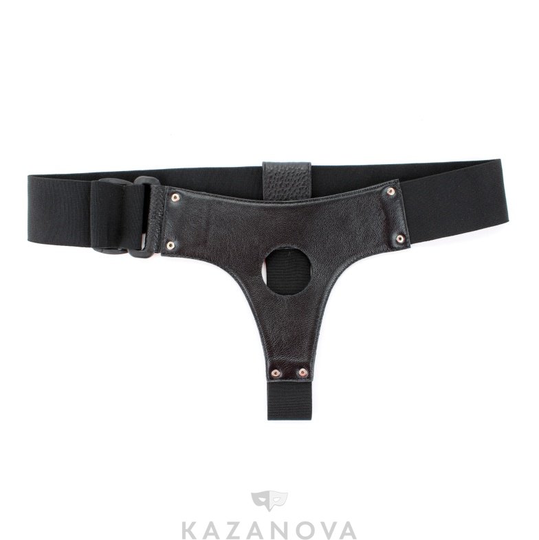Трусики для страпона Арсенал из натуральной кожи с отверстием для страпона черные диаметр 4 см