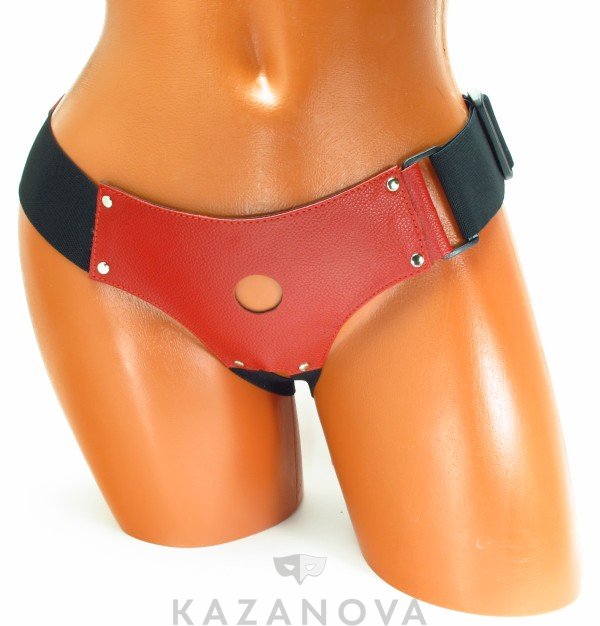 Трусики для страпона Арсенал из натуральной кожи с отверстием для страпона красные диаметр 2,5 см