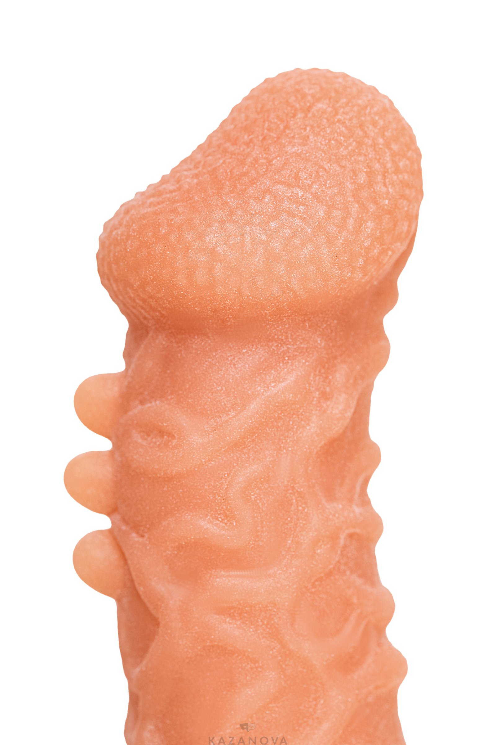 Стимулирующие поверхности в виде небольших бусин телесного цвета воздействуют на стенки влагалища, делают ощущения более насыщенными и приближают к оргазму с каждым движением. Насадка вызывает возбуждающее чувство заполненности, а выделенная головка касается зоны G и вызывает головокружительную кульминацию.