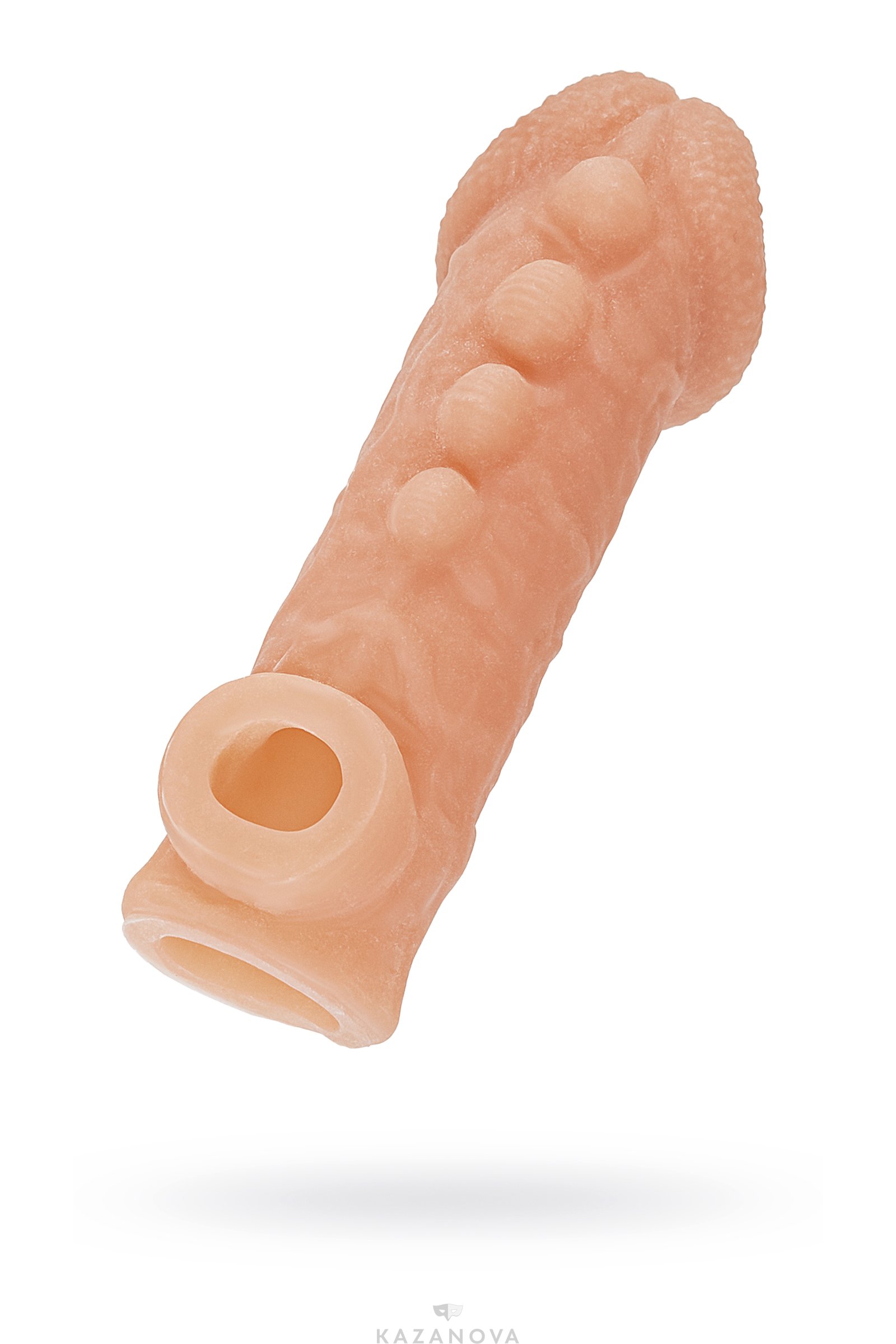 Насадка сделана из эластомера и плотно обхватывает половой член, не соскальзывает во время фрикций.