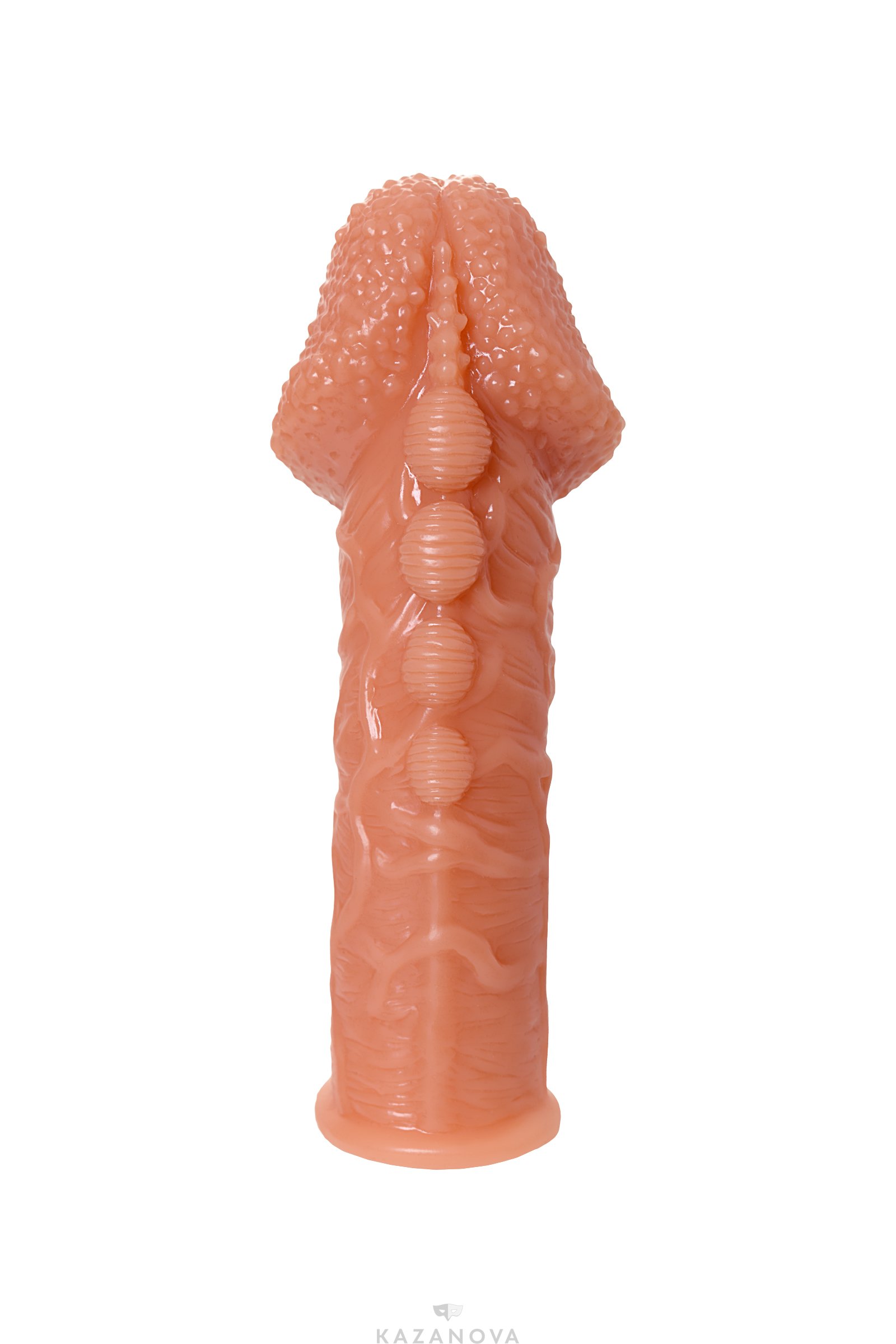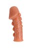 Насадка плотно обхватывает половой член, не скользит во время фрикций, удлиняет и увеличивает его диаметр. Стимулирующие поверхности в виде небольших шипов телесного цвета воздействуют на стенки влагалища, делают ощущения более насыщенными и приближают к оргазму с каждым движением.