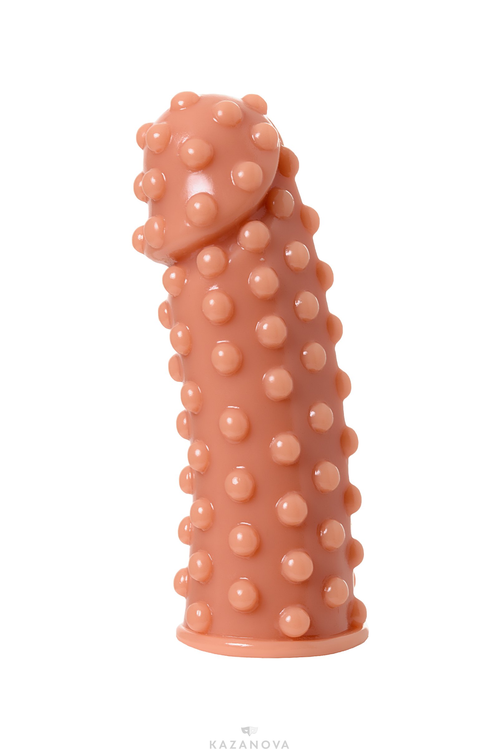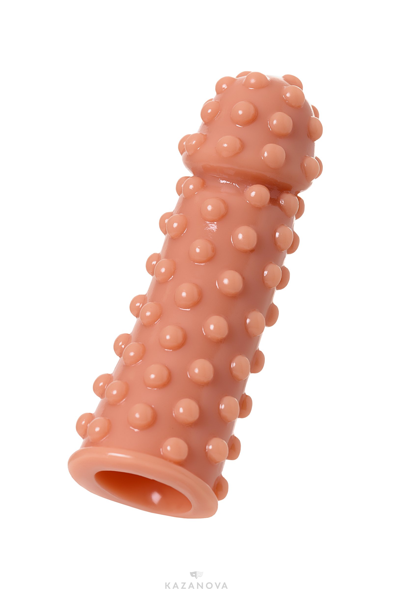 Насадка плотно обхватывает половой член, не скользит во время фрикций, удлиняет и увеличивает его диаметр.