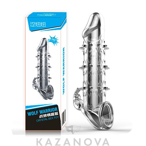 Насадка Wolf Warrior с клиторальным стимулятором прозрачная 13.8 см