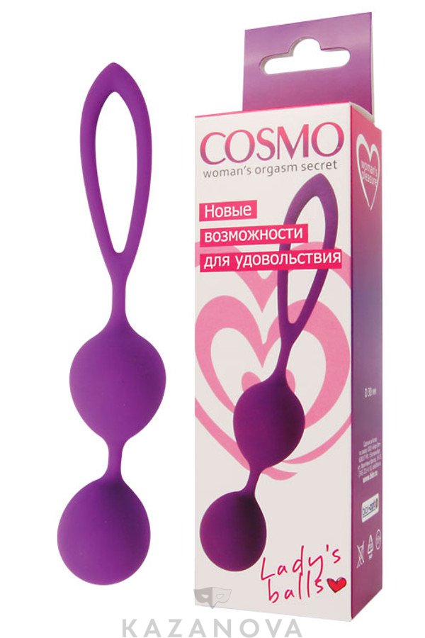 Cosmo Lady's balls – это тренажеры со смещенным центром тяжести. Внутри большей сферы находится шарик меньшего диаметра, который при каждом движении ударяется о стенки и вызывает природную вибрацию. Удобный и прочный силиконовый шнур с петлей позволяет легко извлечь устройство после тренировок.