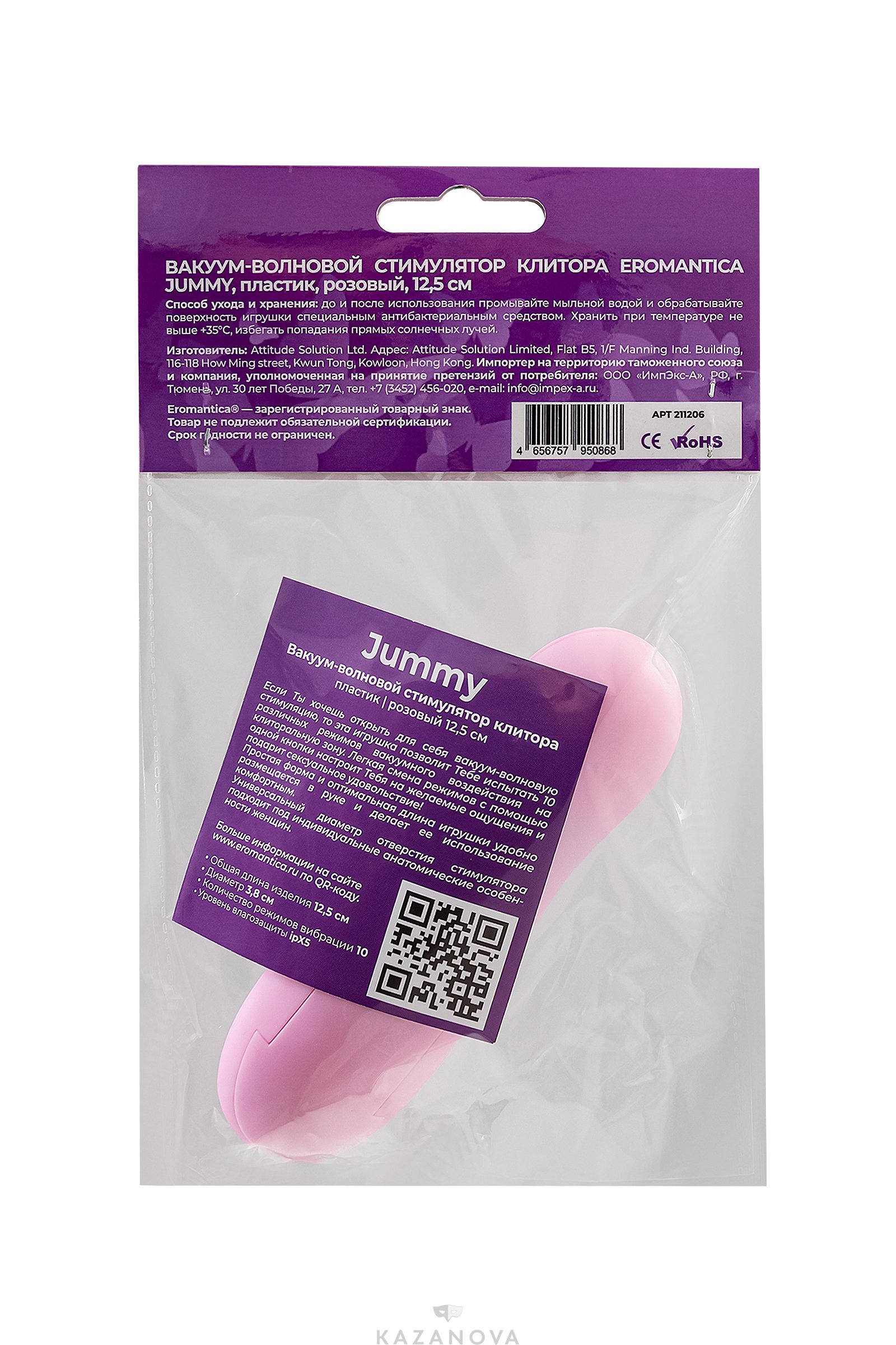 Вакуум-волновой бесконтактный стимулятор клитора Eromantica Jummy розовый