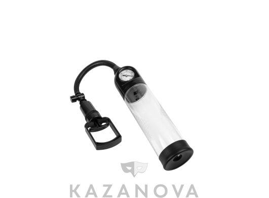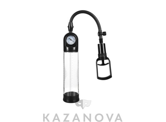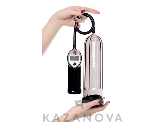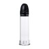 Вакуумная помпа изготовлена из пластика. В комплект входит силиконовая манжета. Помпа оснащена поршневым механизмом. В отличие от груши, поршневой механизм откачивает воздух медленнее, что позволяет контролировать процесс. Кроме того, поршневой механизм более надежен, чем груша.
