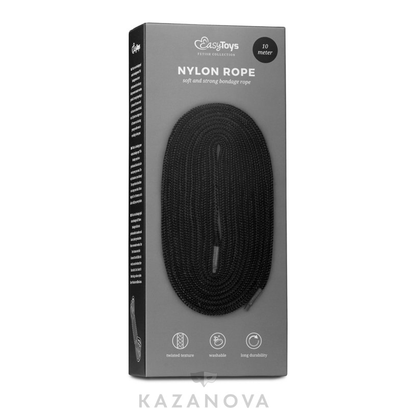 Черная веревка изготовлена из нейлона – этот материал полностью безопасен при использовании, не сдавливает кожу и не оставляет следов на теле.