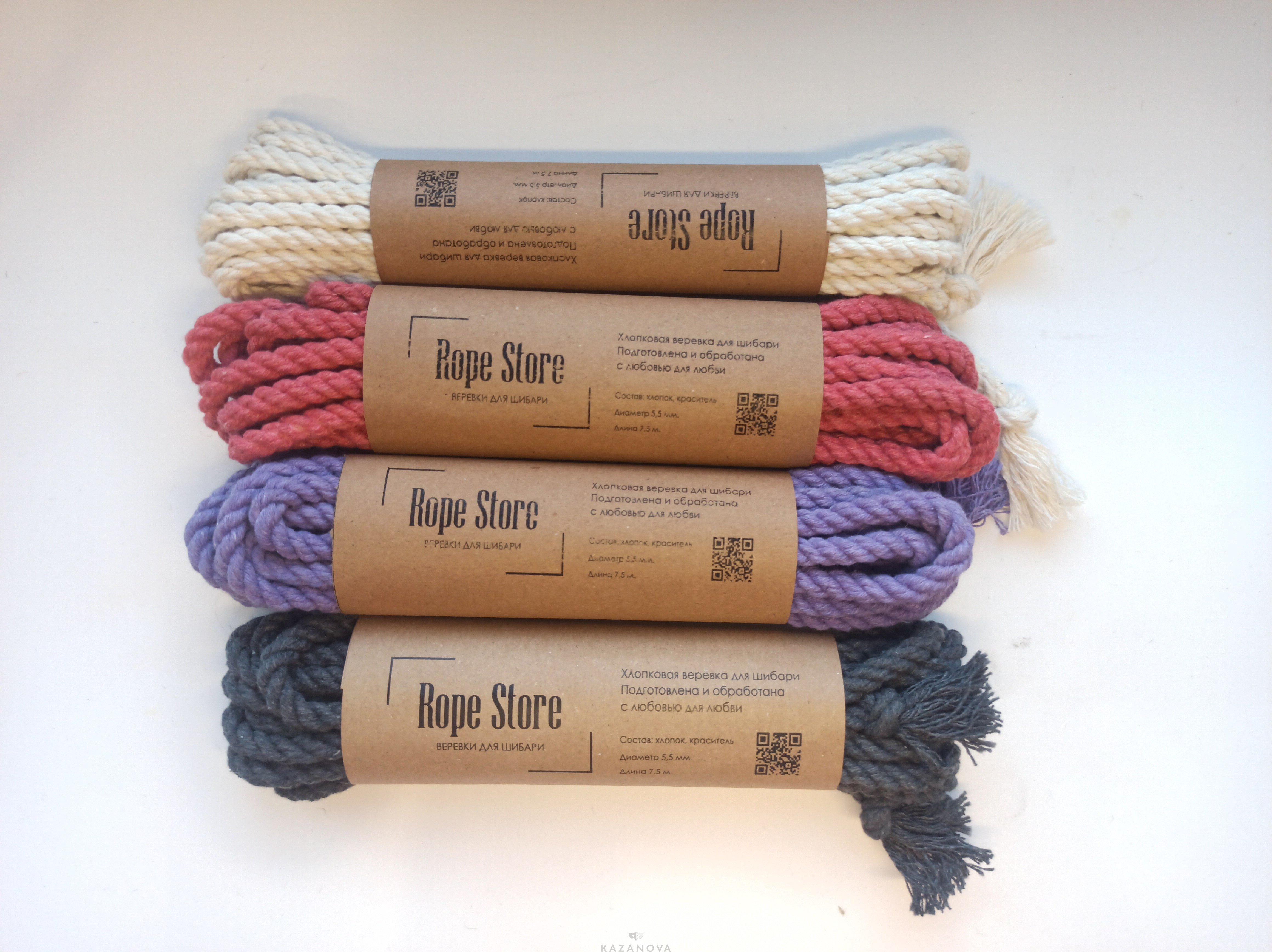 Веревка для связывания изготовлена из хлопка. Веревка безопасна в использовании и не повреждает кожу.