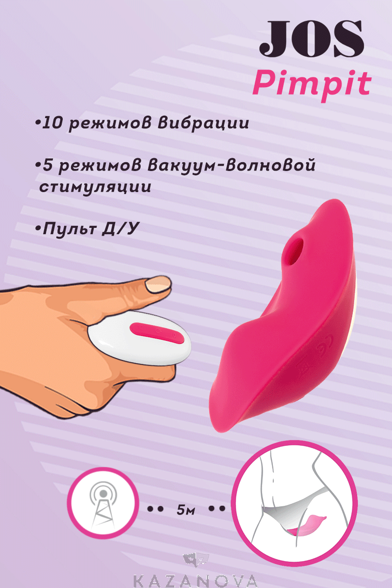 Тихий Jos Pimpit готов доводить тебя до оргазма с помощью 10 режимов разнообразной вибрации и деликатно воздействовать на клитор 5 режимами вакуумно-волновой стимуляции. Все ритмы можно незаметно менять с помощью беспроводного пульта.