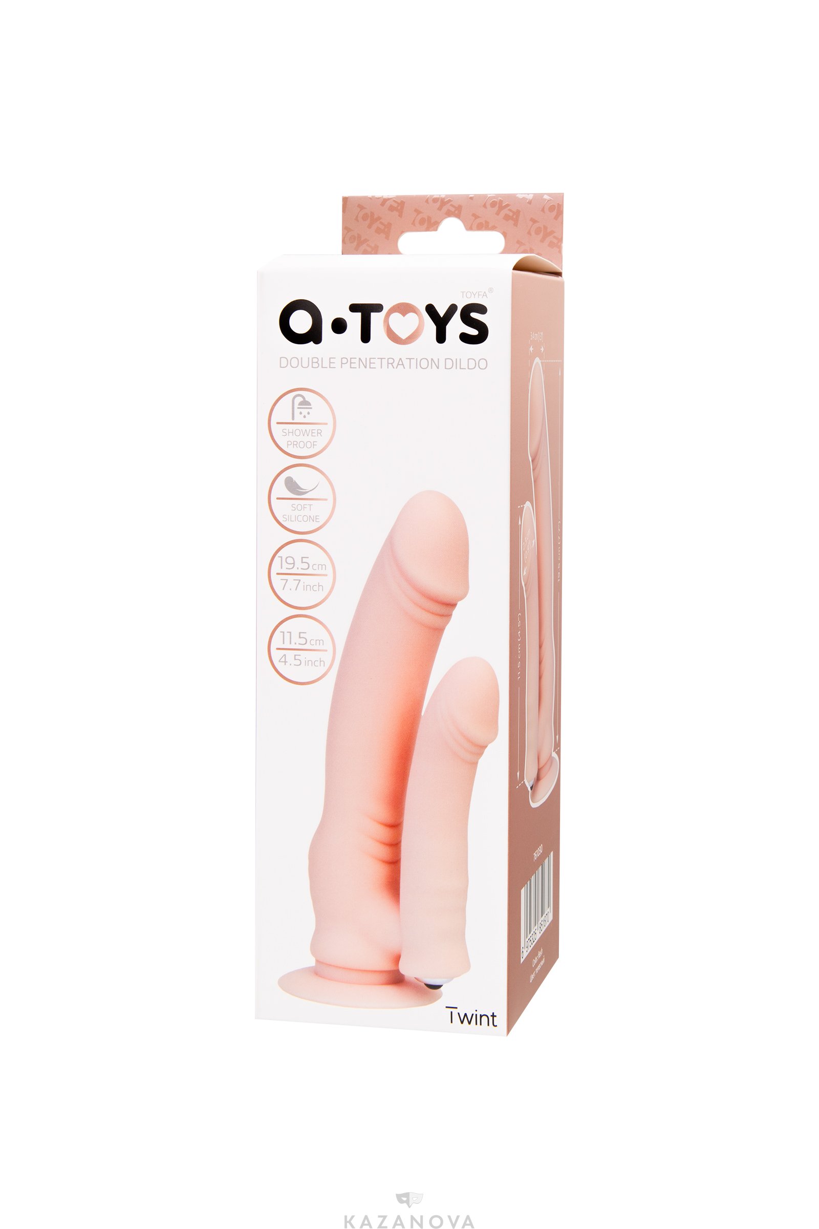 Вибратор двойной A-Toys на присоске телесный из медицинского силикона 19,5 см