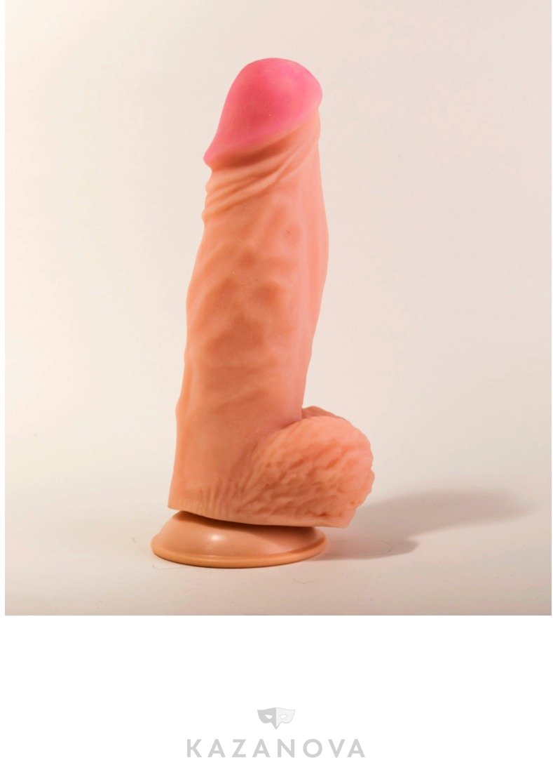 Вибратор-гигант с мошонкой телесный на присоске 27 см 913