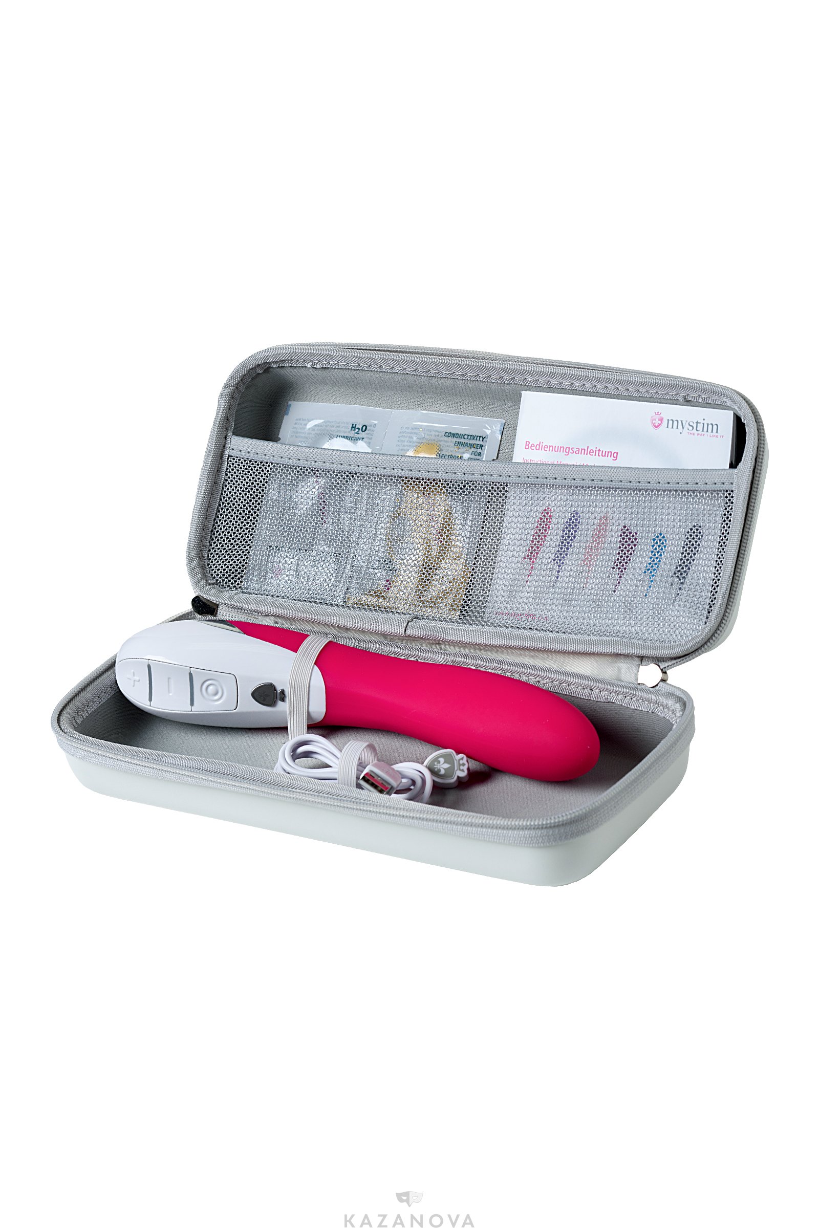 MyStim Elegant Eric перезаряжается от любого USB-порта или сетевого адаптера. Зарядное устройство и кейс для хранения входят в комплект.