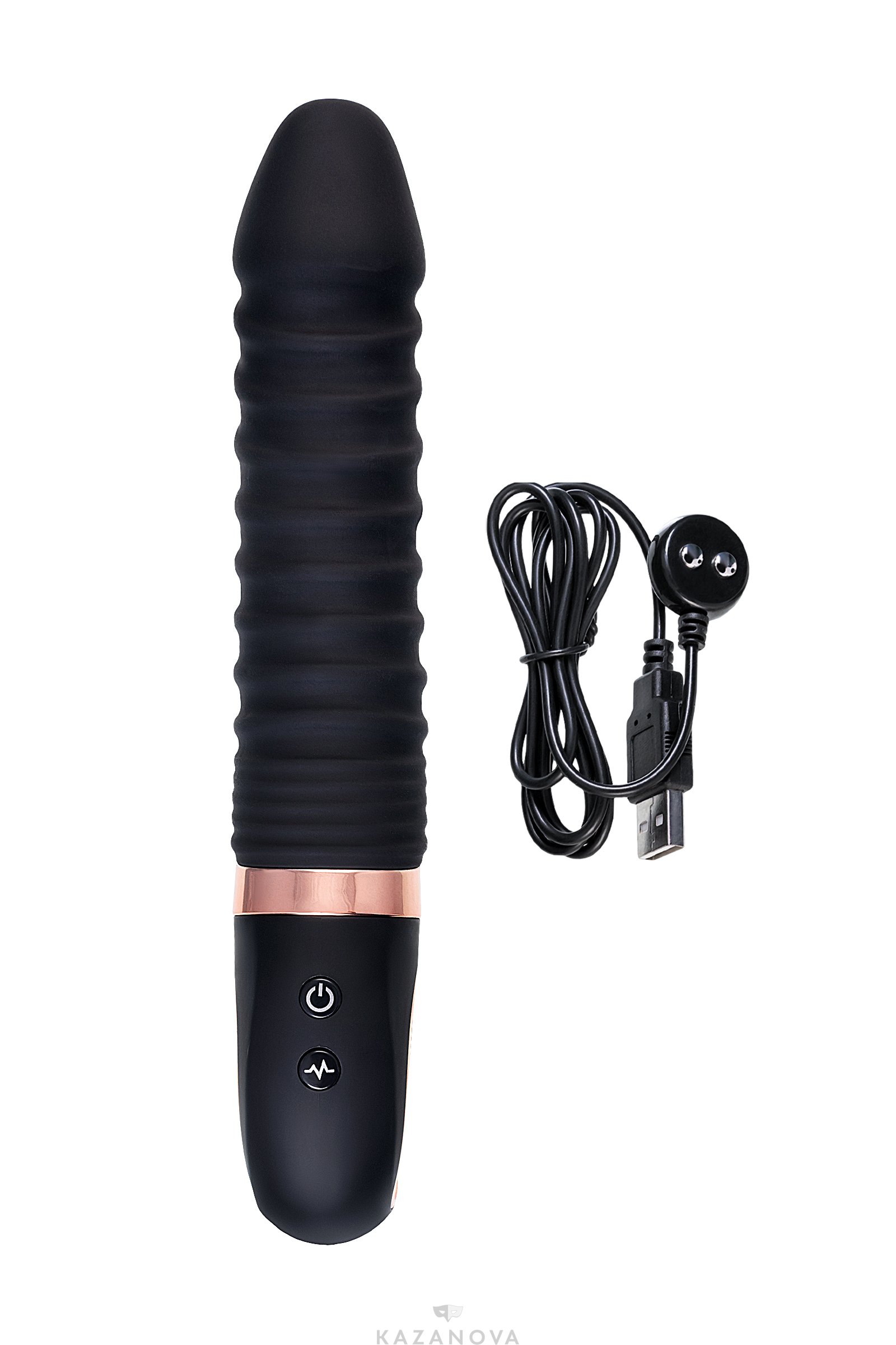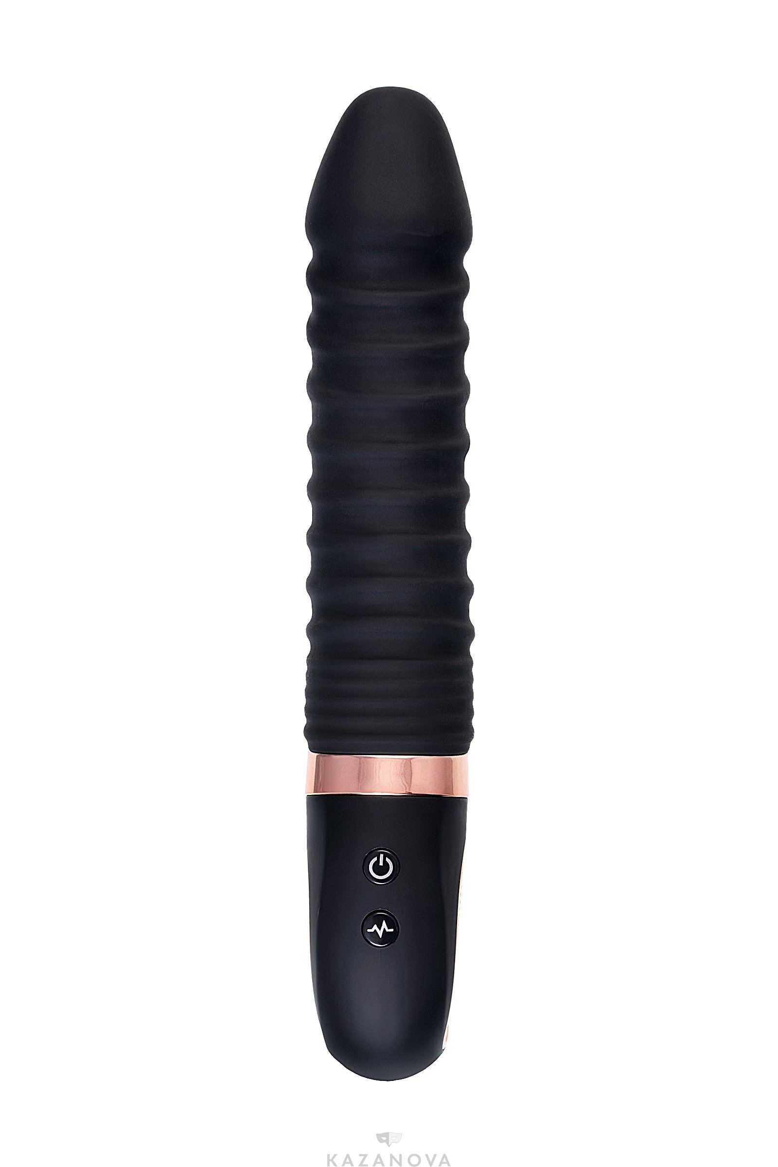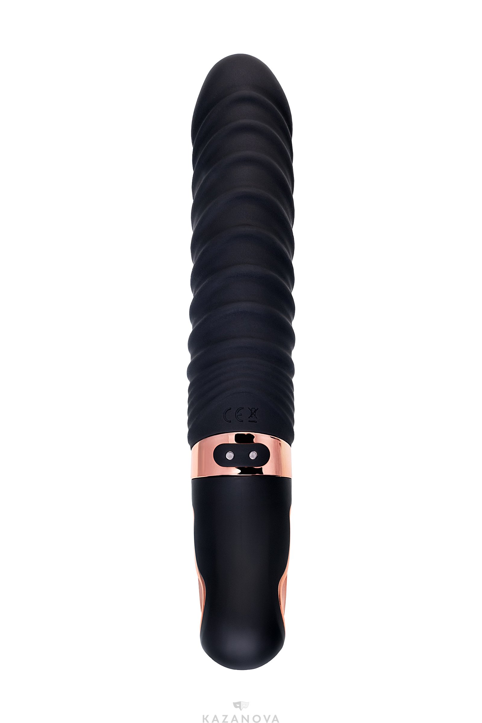 Черная секс-игрушка с вставками цвета розового золота изготовлена из бархатистого силикона. Нежный силикон не содержит фталатов, не вызывает аллергических реакций и подходит для людей с чувствительной кожей.