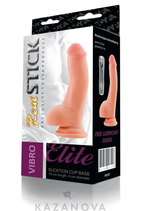 Вибратор RealStick Elite на присоске с мошонкой многопрограммный 18,5 см 007