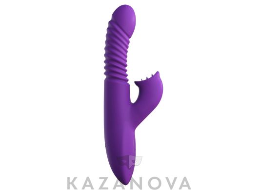 Внутри игрушки находится мощный моторчик, который работает в 10 режимах вибрации внешней част и 5 режимах пенетрации проникающей части. Все ритмы удобно переключать одним касанием встроенного пульта.
