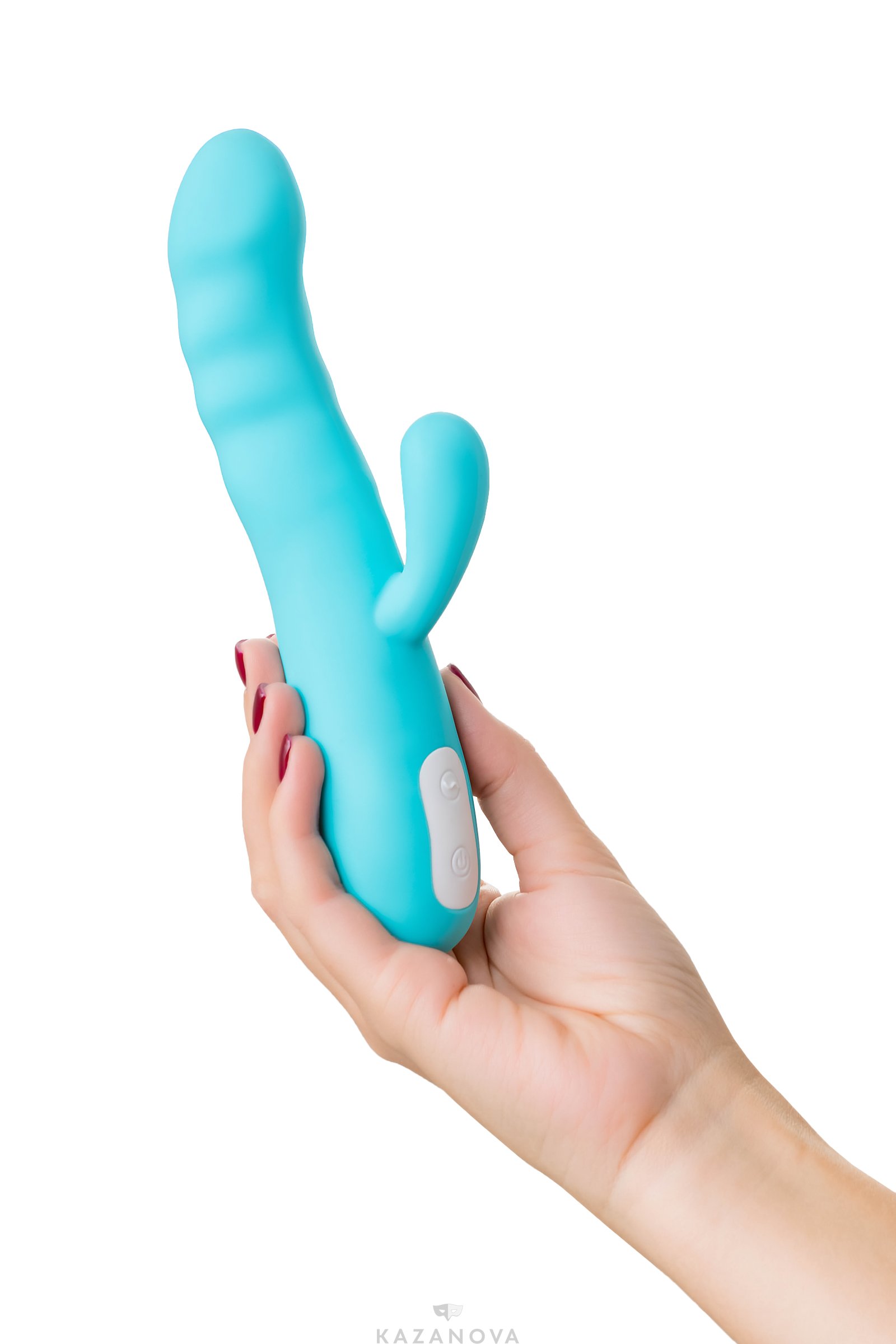 Вибратор с клиторальной стимуляцией Jos MERRY с вращением из силикона голубой
