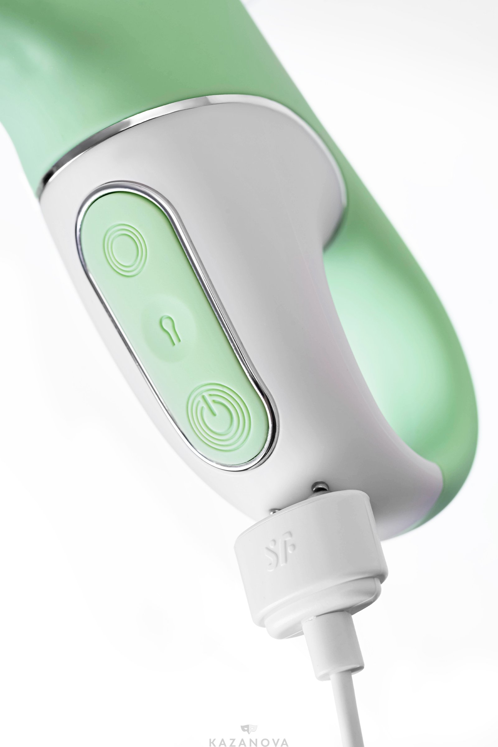 Вибратор с клиторальной стимуляцией Satisfyer Air Pump Bunny зеленый перезаряжаемый из силикона