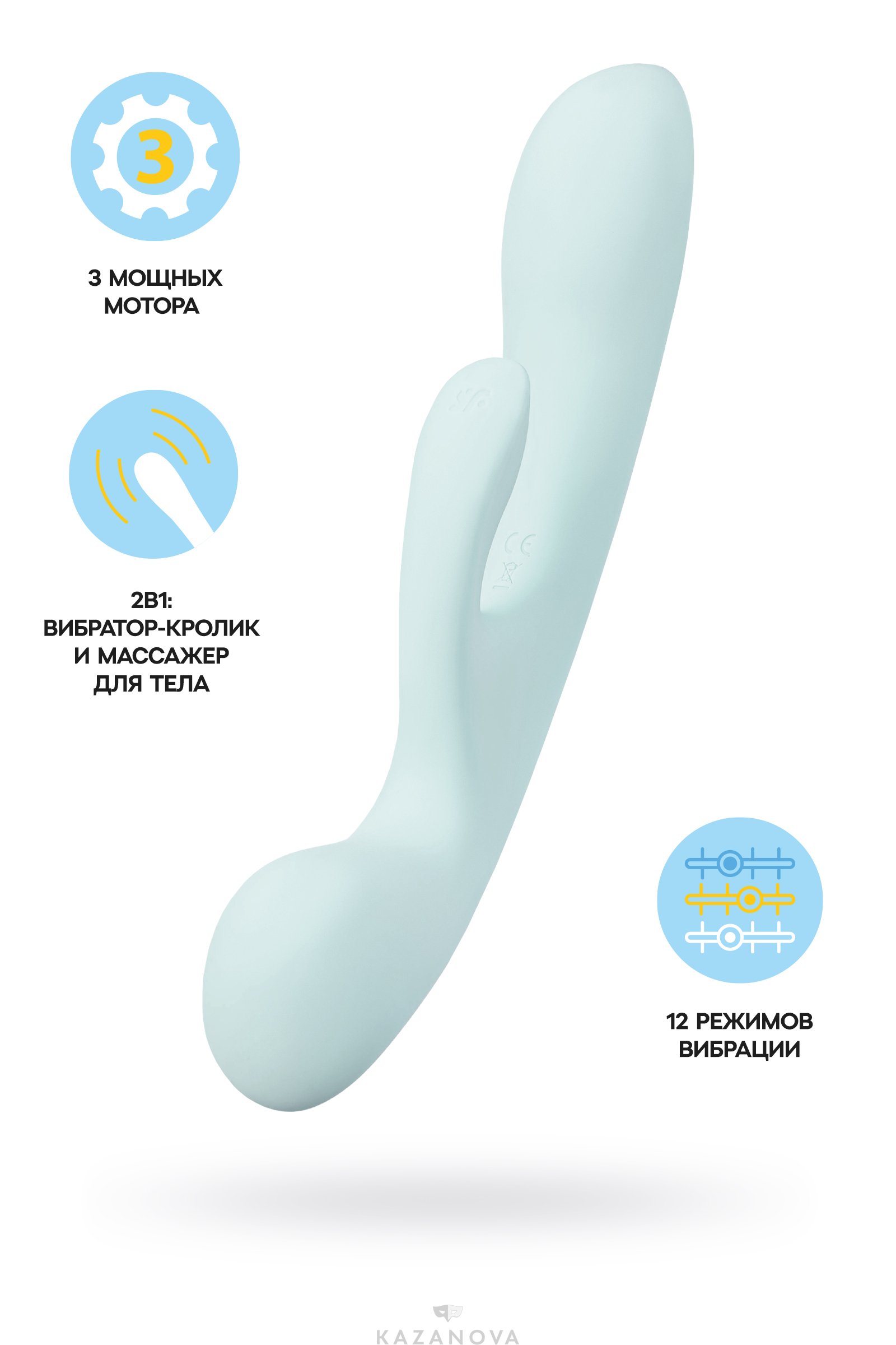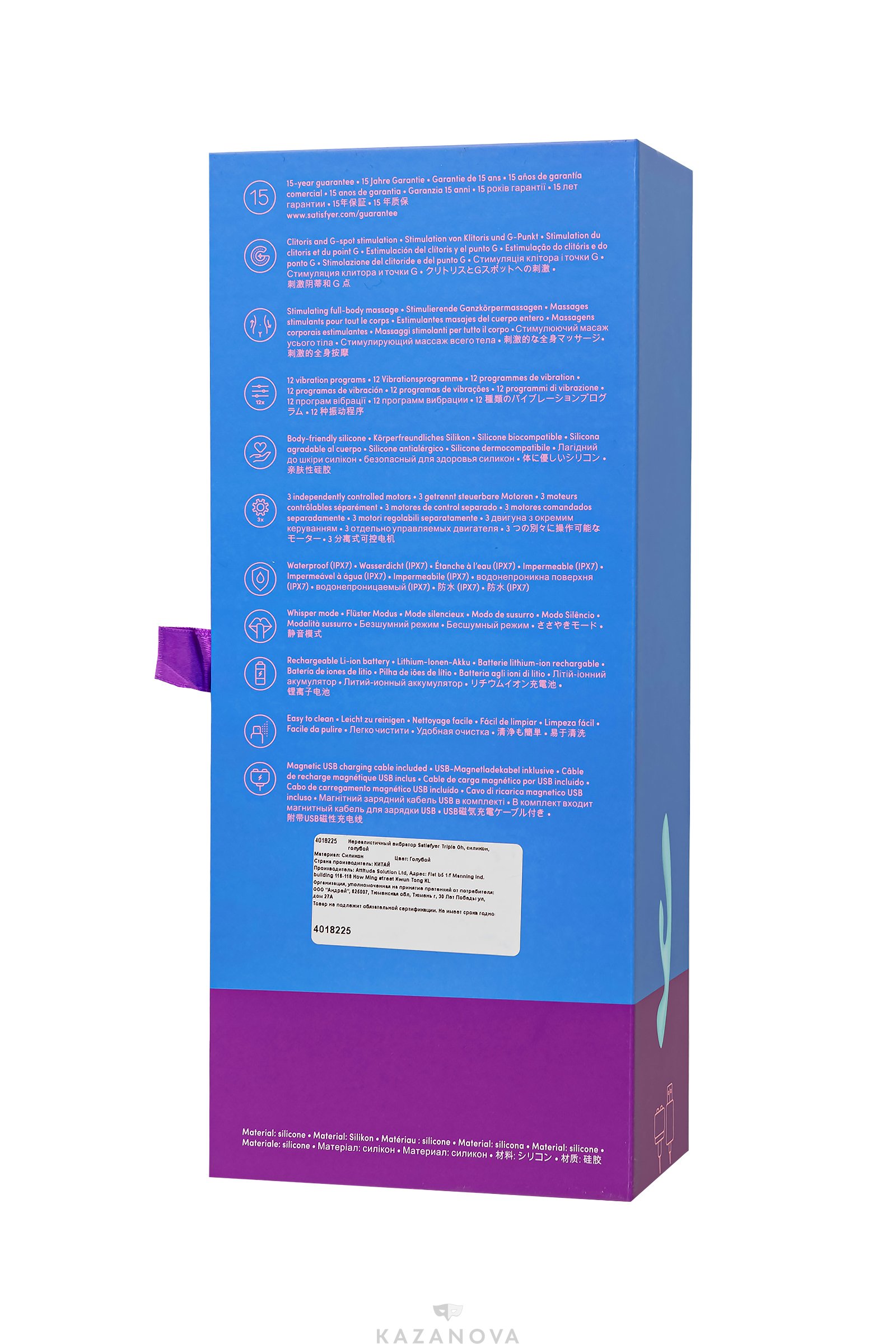 Вибратор с клиторальной стимуляцией Satisfyer Triple Oh из силикона перезаряжаемый голубой 24 см