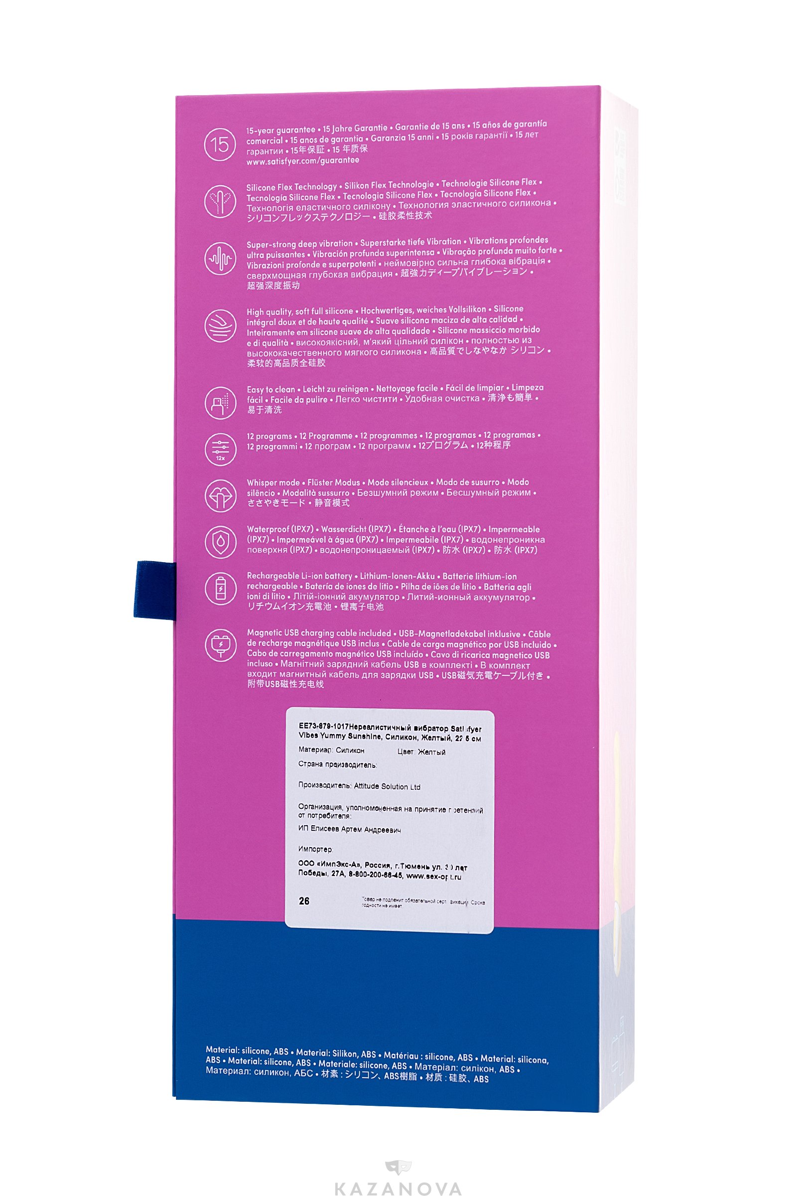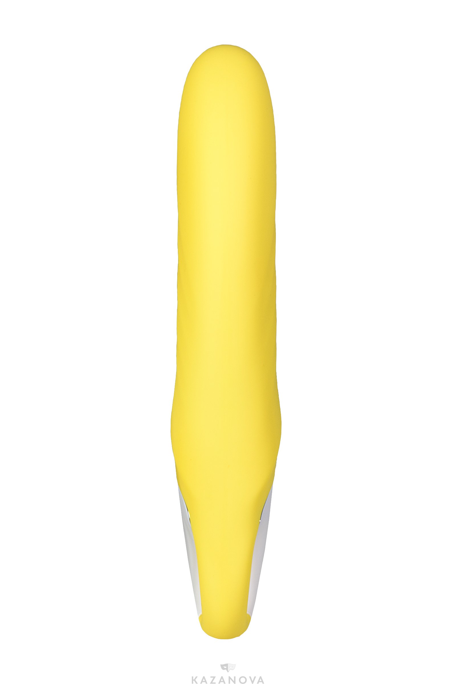 Ярко-желтый вибратор Satisfyer Vibes Yummy Sunshine с первого взгляда влюбляет в себя своим необычным видом, насыщенным цветом и безупречной нежностью.