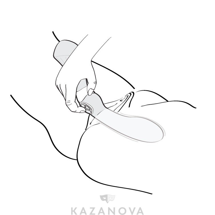 Более объемная часть игрушки предназначена для воздействия на клитор и отлично подходит для разогрева, если ты хочешь провести время наедине с собой. Попробуй коснуться клитора для начала более выпуклой стороной игрушки, а потом переверни и приложи к клитору ту сторону, где находится анатомический изгиб и сравни свои ощущения.
