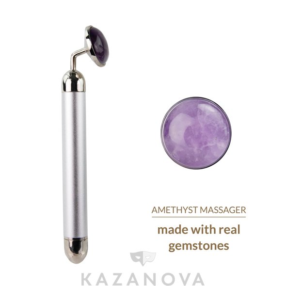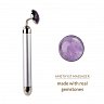 Секс-игрушка изготовлена из серебристого металла, а сам массажер сделан из натурального камня – аметиста.