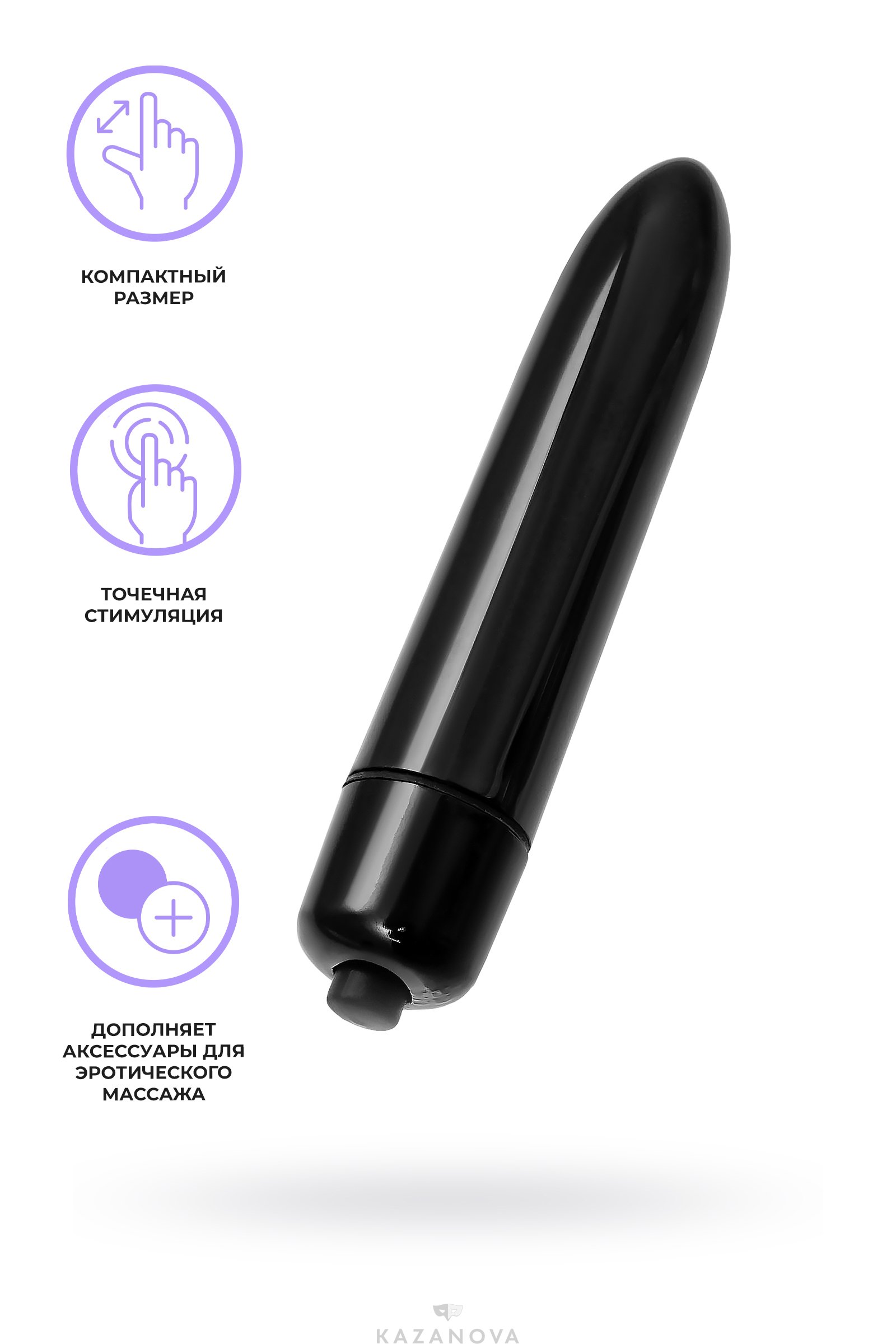 Небольшой размер, 1 режим вибрации, простота использования и универсальность делают вибропулю приятной ноткой большой сексуальной игры.