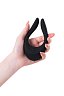 Вибратор фиксируется на мошонке. Если окончания расположить вверх, то во время близости будет стимулироваться клитор партнерши, если вниз – промежность и анус партнера.