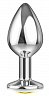 Втулка анальная Diamond металлическая малая серебристая с жёлтым кристаллом
