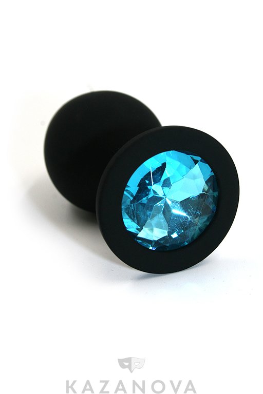 Втулка анальная Kanikule из силикона средняя черная с голубым стразом