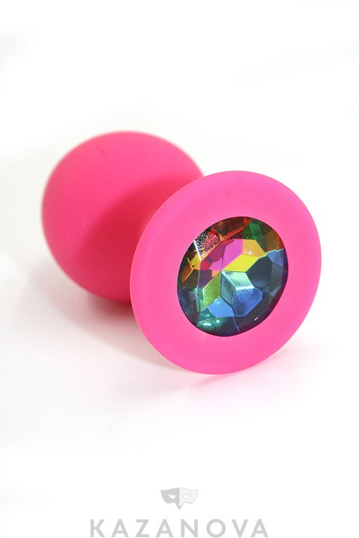 Втулка анальная Kanikule из силикона средняя розовая с радужным стразом