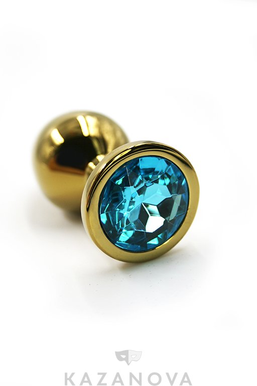 Секс-игрушка золотистого цвета изготовлена из гладкого металла и декорирована голубым кристаллом. Металл полностью безопасен, не вызывает аллергических реакций и подходит для женщин с чувствительной кожей.