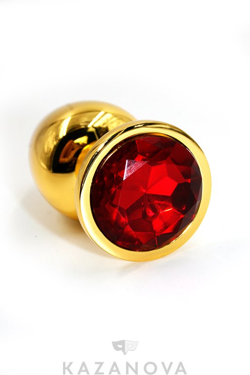 Втулка изготовлена из золотистого металла и декорирована красным кристаллом. Металл не вызывает аллергических реакций и подходит для женщин с чувствительной кожей. Игрушки из металла можно использовать с любыми видами любрикантов.