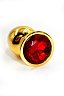 Втулка анальная Kanikule металлическая малая золотая с красным стразом