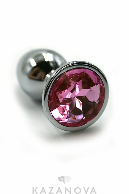 Втулка изготовлена из серебристого металла и декорирована розовой стразой. Металл не вызывает аллергических реакций и подходит для женщин с чувствительной кожей. Игрушки из металла можно использовать с любыми видами любрикантов.