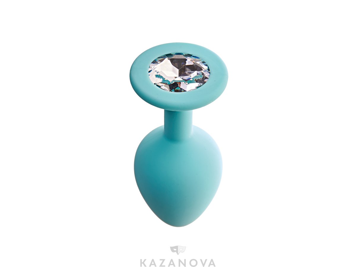 Втулка анальная Le Frivole Core Gamma из силикона малая бирюзовая с прозрачным стразом