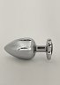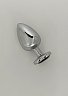 Втулка анальная металлическая большая серебристая в форме сердечка с черным камнем
