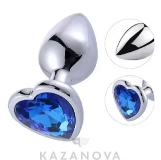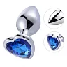 Втулка анальная металлическая большая серебристая в форме сердечка с синим камнем