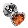 Втулка анальная металлическая большая серебристая в форме сердечка с янтарным камнем