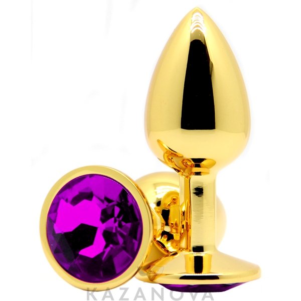 Втулка анальная металлическая малая золотая с фиолетовым камнем 005