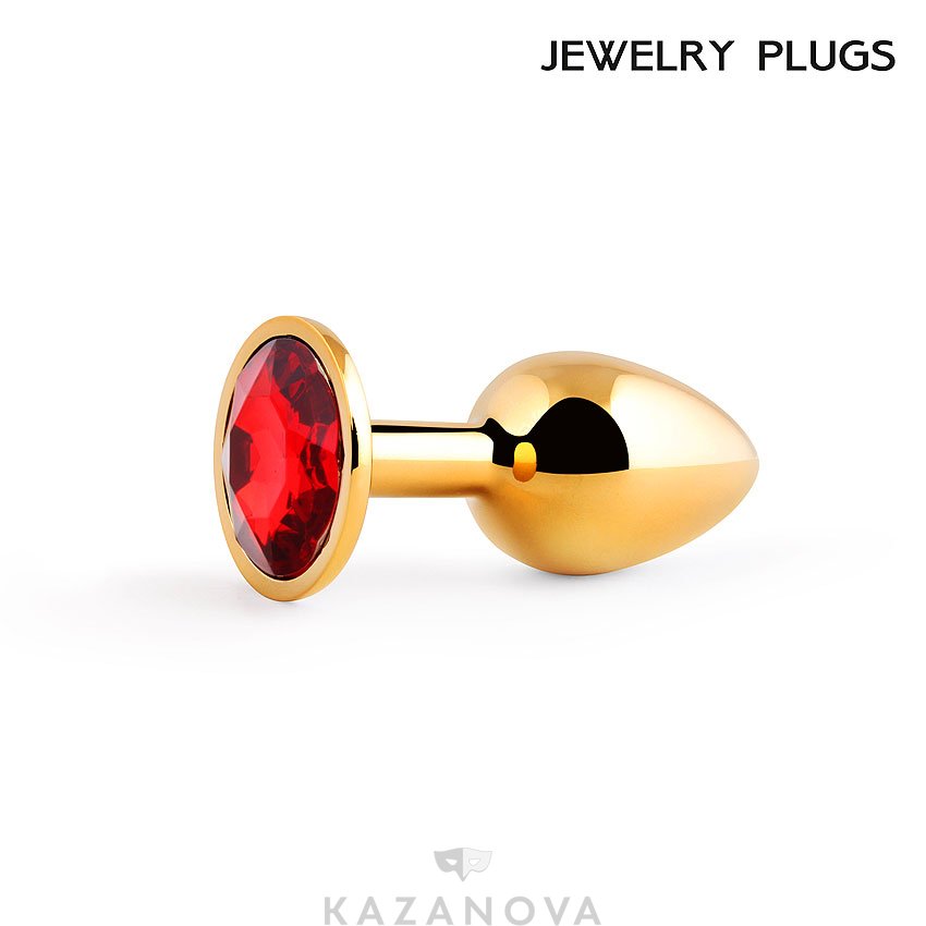 Втулка анальная металлическая малая золотая с красным кристаллом