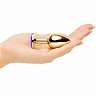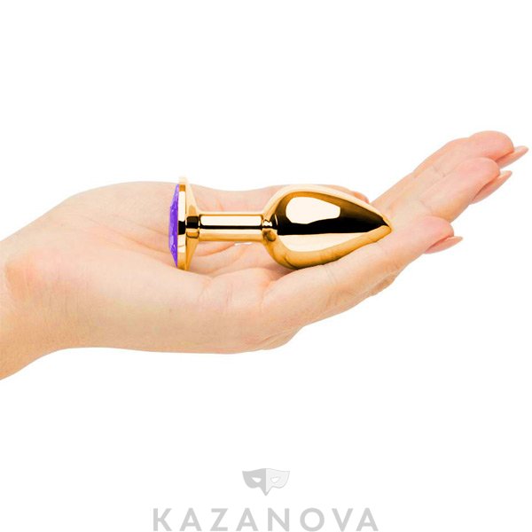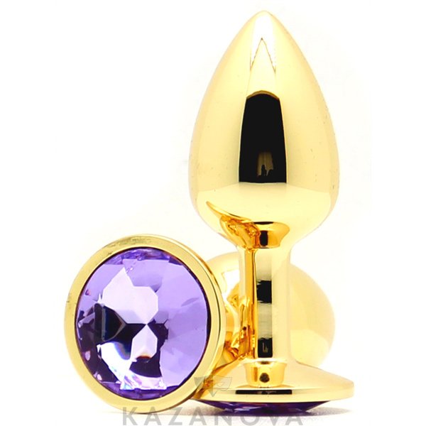 Втулка анальная металлическая малая золотая с сиреневым камнем 005