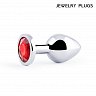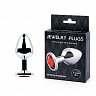 Втулка анальная металлическая средняя серебристая с красным кристаллом