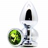 Втулка анальная металлическая средняя серебристая с светло-зеленым стразом 018